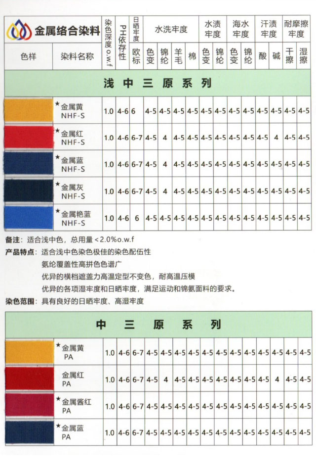 高牢度分散染料作為合成纖維染色的核心材料,以分子結構小、不含水溶性基團為特征,需借助分散劑實現均勻染色。其技術特性聚焦于色牢度提升,涵蓋耐洗、耐光、耐摩擦、耐升華等多維度性能,采用五級制評級體系(耐光牢度為八級),級數越高代表性能越優。例如,蒽醌結構染料因分子穩定性高,耐曬、耐熱性能顯著;偶氮…
